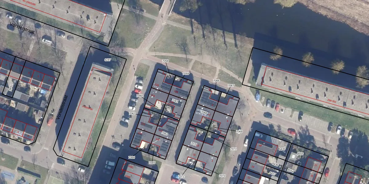 Gebruik de zoekbalk of klik op een perceel voor informatie over de adressen binnen dit perceel.