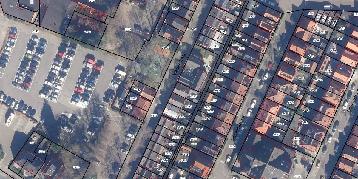 Het perceel waarop Weverstraat 24-B staat heeft een oppervlakte van 98 m². Dit is een klein perceel. De perceeloppervlakte wordt geregistreerd door het Kadaster. Gedetailleerde informatie over de maten van dit perceel kunt u vinden in het rapport Kadastrale kaart met maatvoering van Weverstraat 24-B.