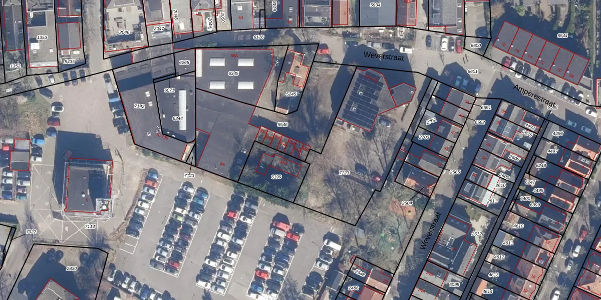 Het perceel waarop Weverstraat 55-c staat heeft een oppervlakte van 1039 m². Dit is een zeer groot perceel. De perceeloppervlakte wordt geregistreerd door het Kadaster. Gedetailleerde informatie over de maten van dit perceel kunt u vinden in het rapport Kadastrale kaart met maatvoering van Weverstraat 55-c.