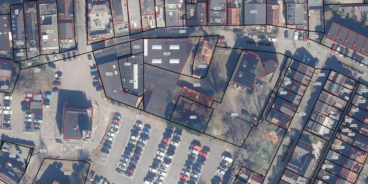 Het perceel waarop Weverstraat 55-h staat heeft een oppervlakte van 1039 m². Dit is een zeer groot perceel. De perceeloppervlakte wordt geregistreerd door het Kadaster. Gedetailleerde informatie over de maten van dit perceel kunt u vinden in het rapport Kadastrale kaart met maatvoering van Weverstraat 55-h.