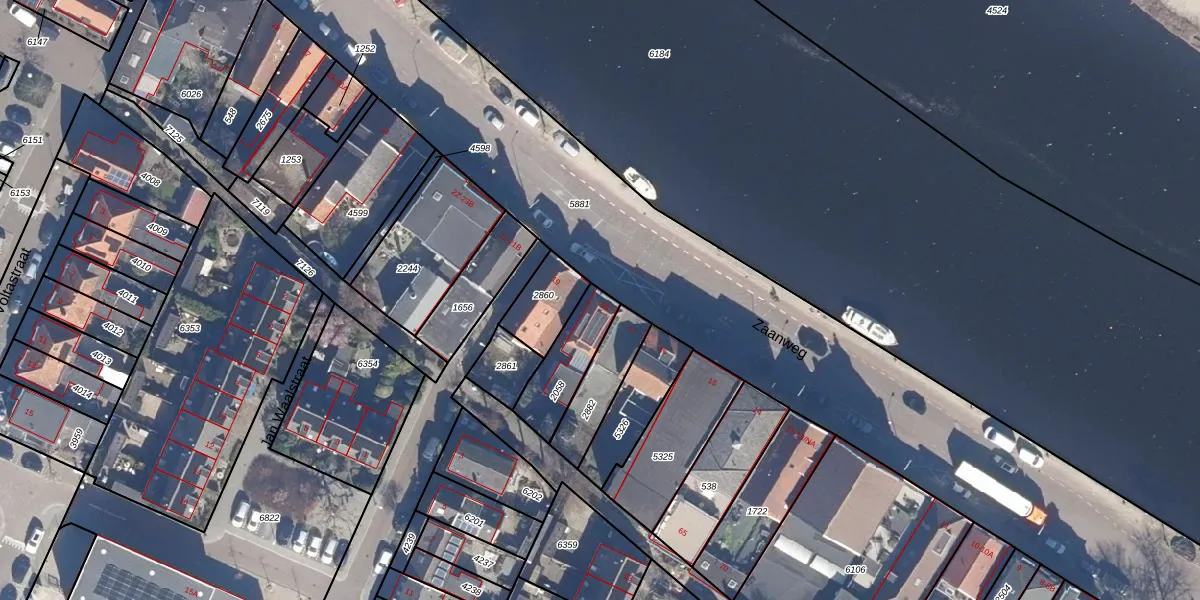 Zaanweg 18 is gelegen op kadastraal perceel WMV00B2058. Deze kadastrale aanduiding is uniek en wordt gebruikt door het Kadaster om eigendomsrechten en andere zakelijke rechten vast te leggen. Het perceel maakt onderdeel uit van de kadastrale gemeente Wormerveer.