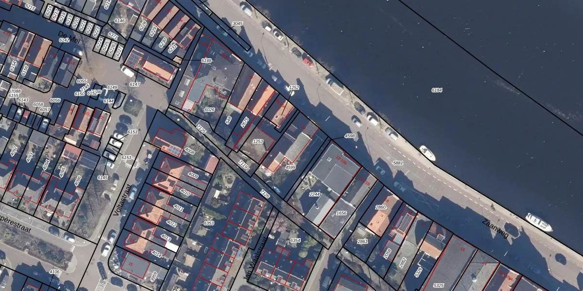 Zaanweg 24 is gelegen op kadastraal perceel WMV00B4599. Deze kadastrale aanduiding is uniek en wordt gebruikt door het Kadaster om eigendomsrechten en andere zakelijke rechten vast te leggen. Het perceel maakt onderdeel uit van de kadastrale gemeente Wormerveer.