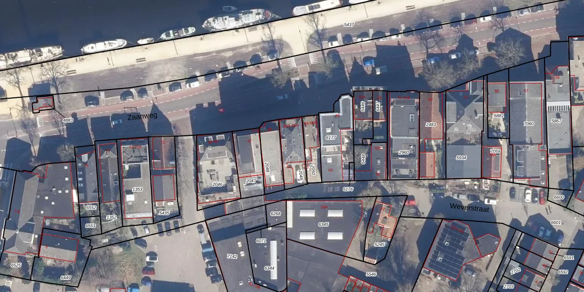 Zaanweg 65-B is gelegen op kadastraal perceel WMV00B2049. Deze kadastrale aanduiding is uniek en wordt gebruikt door het Kadaster om eigendomsrechten en andere zakelijke rechten vast te leggen. Het perceel maakt onderdeel uit van de kadastrale gemeente Wormerveer.