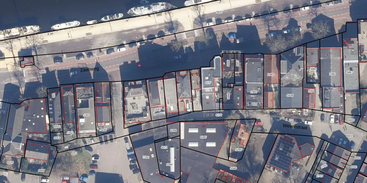 Zaanweg 65-D is gelegen op kadastraal perceel WMV00B2049. Deze kadastrale aanduiding is uniek en wordt gebruikt door het Kadaster om eigendomsrechten en andere zakelijke rechten vast te leggen. Het perceel maakt onderdeel uit van de kadastrale gemeente Wormerveer.