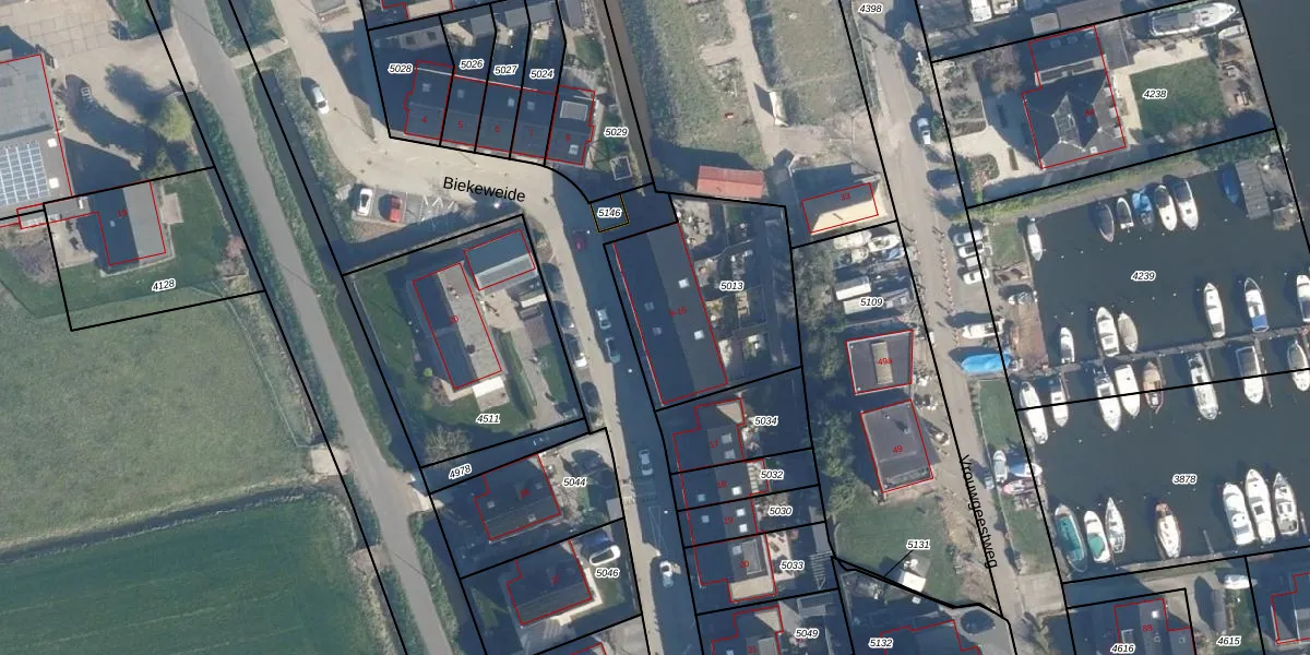 Biekeweide 13 is gelegen op kadastraal perceel WBG00B5013. Deze kadastrale aanduiding is uniek en wordt gebruikt door het Kadaster om eigendomsrechten en andere zakelijke rechten vast te leggen. Het perceel maakt onderdeel uit van de kadastrale gemeente Woubrugge.