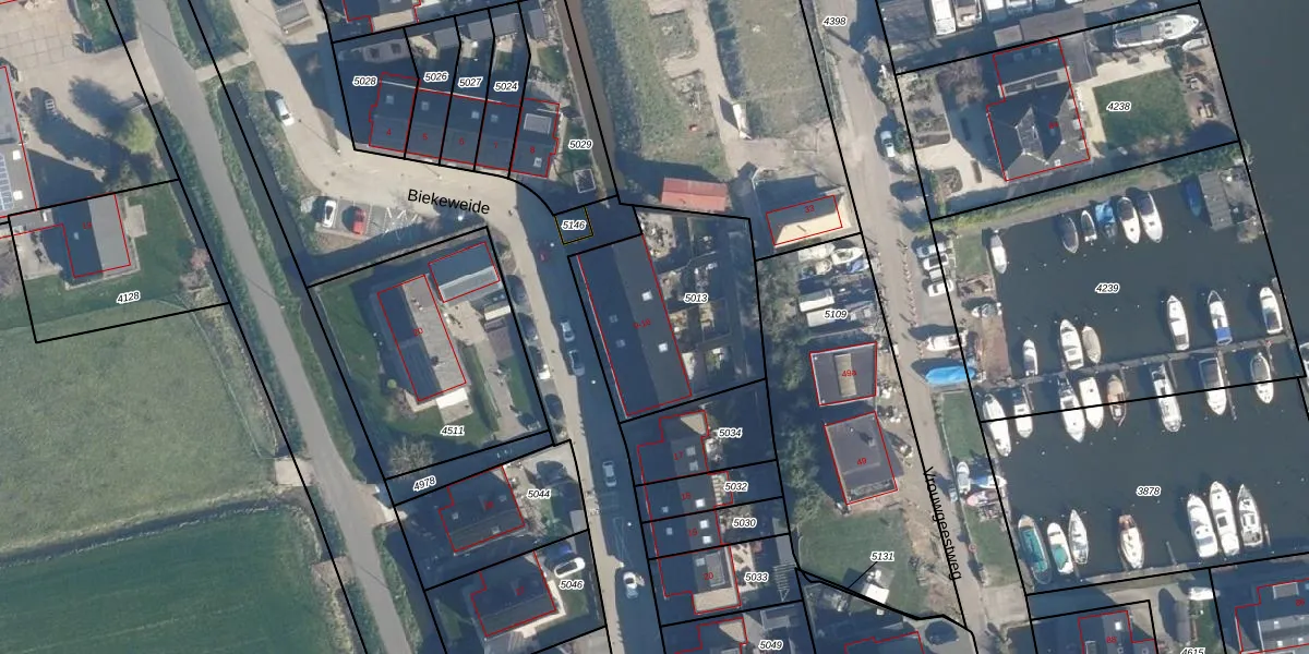 Biekeweide 14 is gelegen op kadastraal perceel WBG00B5013. Deze kadastrale aanduiding is uniek en wordt gebruikt door het Kadaster om eigendomsrechten en andere zakelijke rechten vast te leggen. Het perceel maakt onderdeel uit van de kadastrale gemeente Woubrugge.