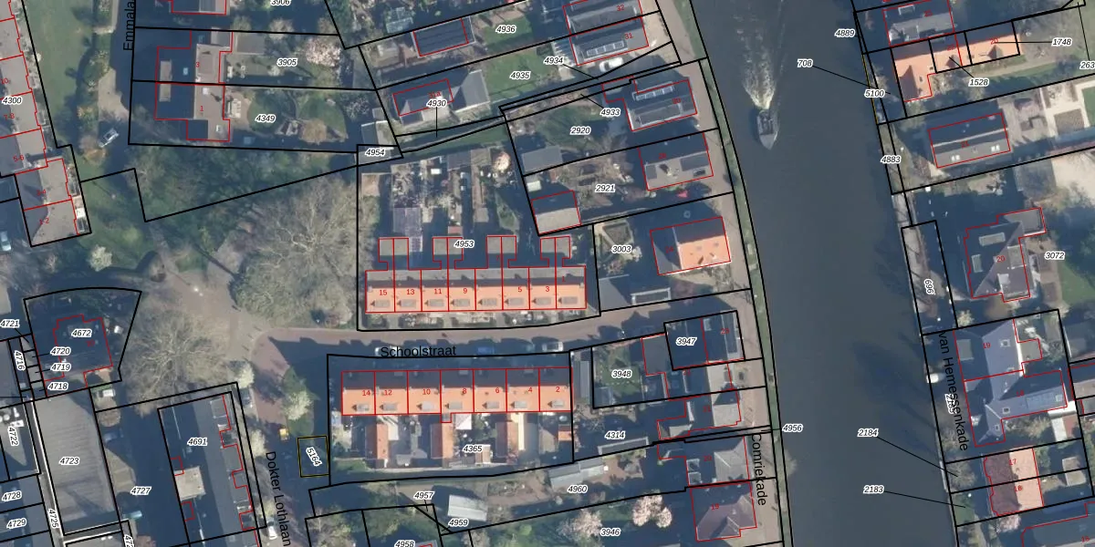 Schoolstraat 3 is gelegen op kadastraal perceel WBG00B4953. Deze kadastrale aanduiding is uniek en wordt gebruikt door het Kadaster om eigendomsrechten en andere zakelijke rechten vast te leggen. Het perceel maakt onderdeel uit van de kadastrale gemeente Woubrugge.