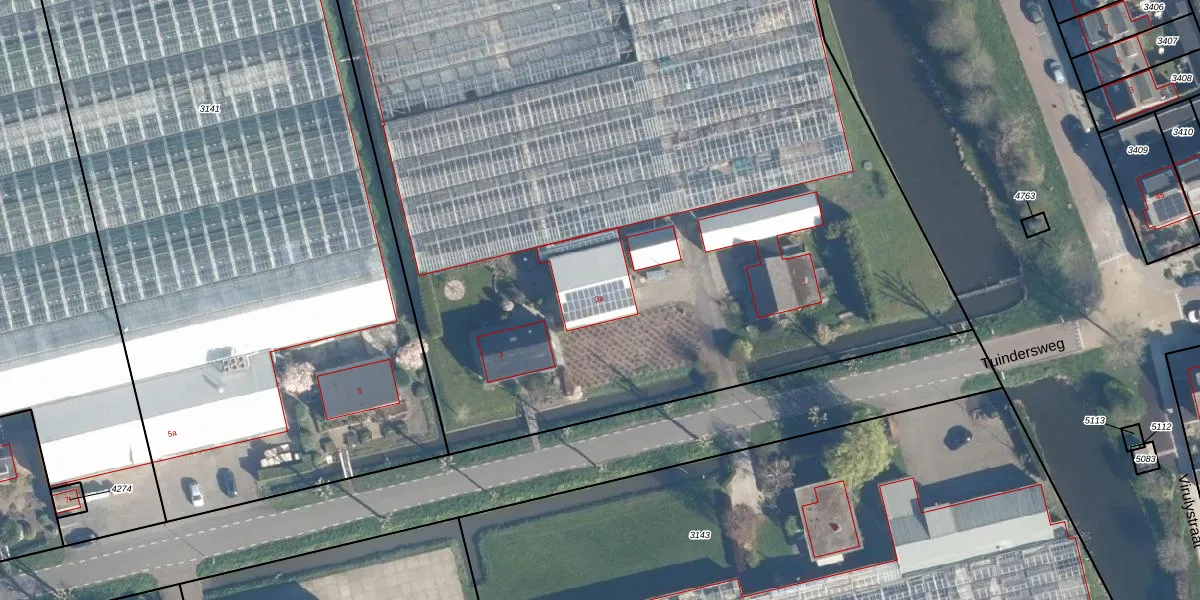 Tuindersweg 3-a is gelegen op kadastraal perceel WBG00B3142. Deze kadastrale aanduiding is uniek en wordt gebruikt door het Kadaster om eigendomsrechten en andere zakelijke rechten vast te leggen. Het perceel maakt onderdeel uit van de kadastrale gemeente Woubrugge.