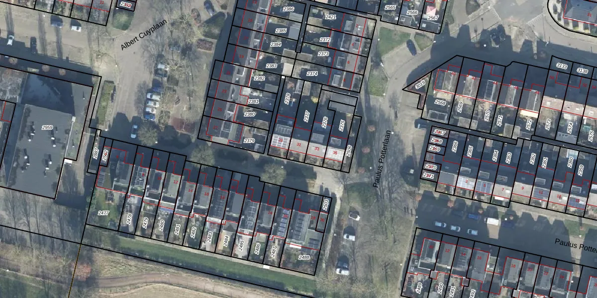 Albert Cuyplaan 31 is gelegen op kadastraal perceel WDB02E2377. Deze kadastrale aanduiding is uniek en wordt gebruikt door het Kadaster om eigendomsrechten en andere zakelijke rechten vast te leggen. Het perceel maakt onderdeel uit van de kadastrale gemeente Woudenberg.