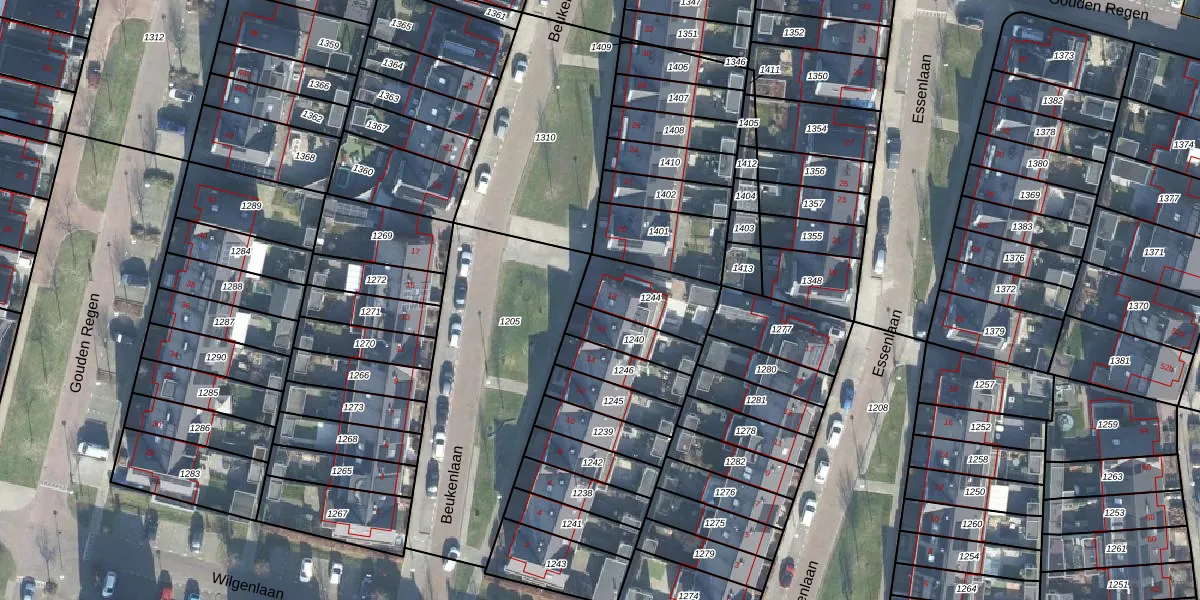 Gebruik de zoekbalk of klik op een perceel voor informatie over de adressen binnen dit perceel.