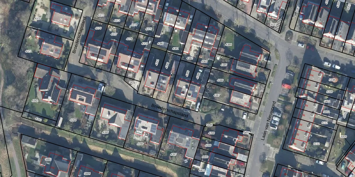Broederschapsland 4 is gelegen op kadastraal perceel WDB02B4389. Deze kadastrale aanduiding is uniek en wordt gebruikt door het Kadaster om eigendomsrechten en andere zakelijke rechten vast te leggen. Het perceel maakt onderdeel uit van de kadastrale gemeente Woudenberg.