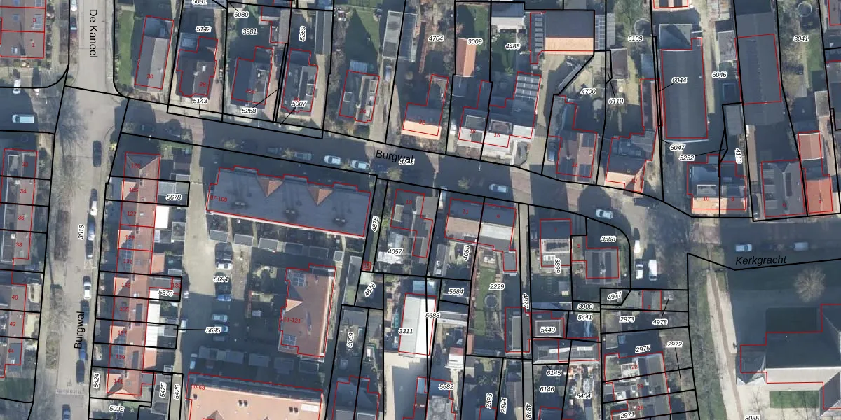 Het perceel waarop Burgwal 13 staat heeft een oppervlakte van 275 m². Dit is een middelgroot perceel. De perceeloppervlakte wordt geregistreerd door het Kadaster. Gedetailleerde informatie over de maten van dit perceel kunt u vinden in het rapport Kadastrale kaart met maatvoering van Burgwal 13.