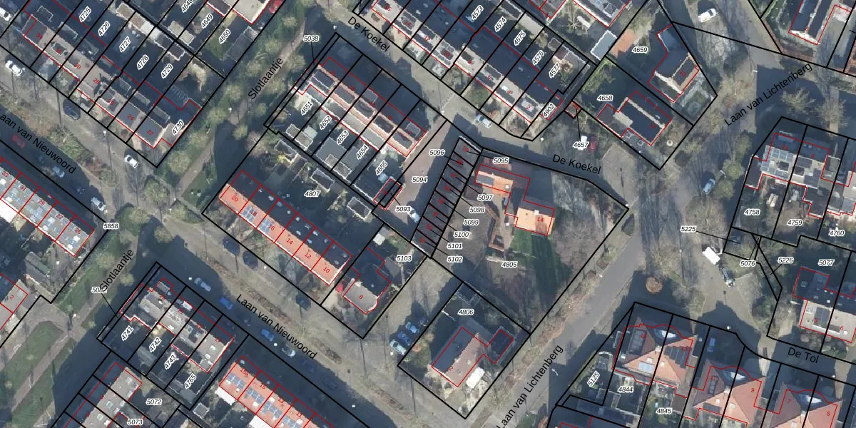 Gebruik de zoekbalk of klik op een perceel voor informatie over de adressen binnen dit perceel.
