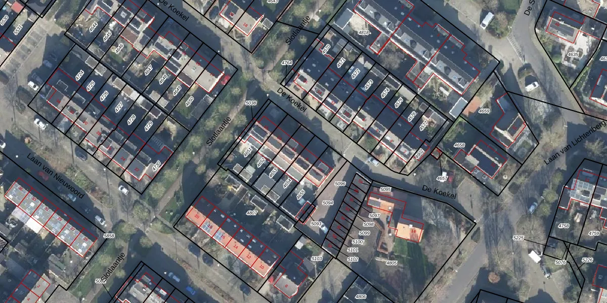 Gebruik de zoekbalk of klik op een perceel voor informatie over de adressen binnen dit perceel.