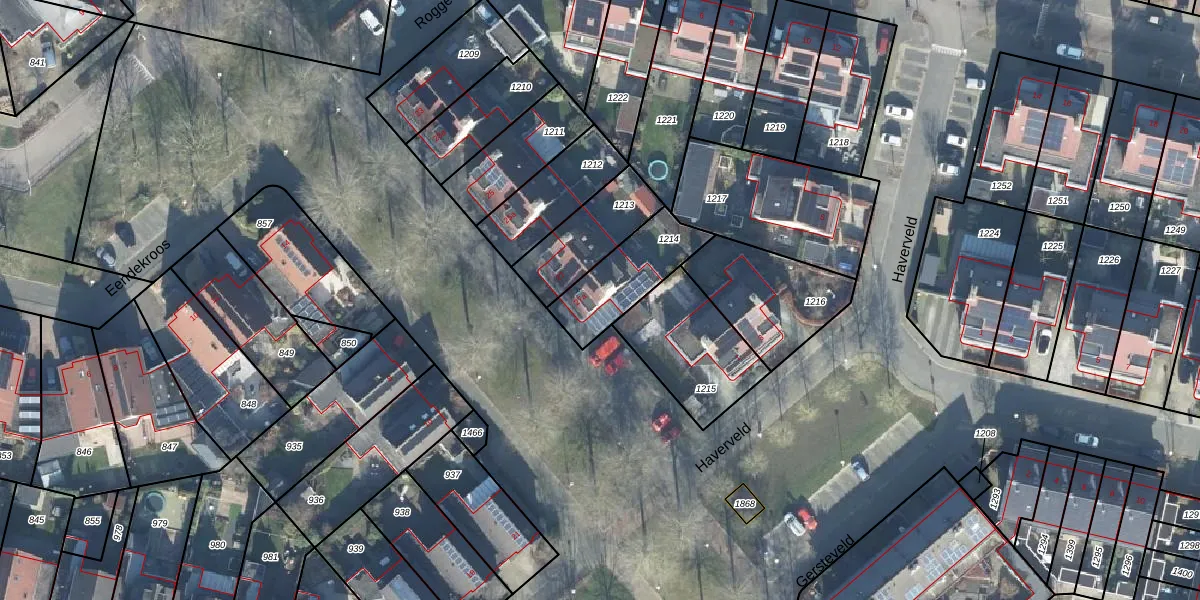 Het adres ligt op het perceel WDB02-H-1214, dat zich in de kadastrale gemeente Woudenberg bevindt. De gemiddelde perceelgrootte in Woudenberg is 4818,38 m². Dit perceel is kleiner: de perceeloppervlakte bedraagt 249 m². Het kleinste perceel in de kadastrale gemeente is 0 m² groot. De grootste perceeloppervlakte is 2,25 km². Dit is het enige adres dat aanwezig is op het perceel. De huidige grenzen van het perceel zijn digitaal in de Basisregistratie Kadaster (BRK) geregistreerd op 25-08-2011.