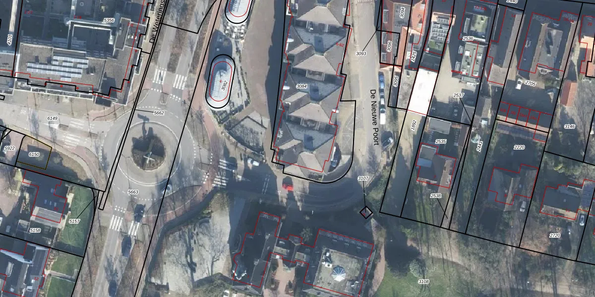 Het perceel waarop De Nieuwe Poort 22 staat heeft een oppervlakte van 1620 m². Dit is een zeer groot perceel. De perceeloppervlakte wordt geregistreerd door het Kadaster. Gedetailleerde informatie over de maten van dit perceel kunt u vinden in het rapport Kadastrale kaart met maatvoering van De Nieuwe Poort 22.