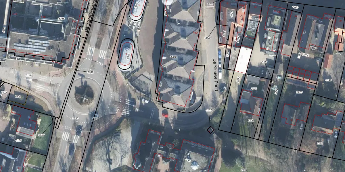 Het perceel waarop De Nieuwe Poort 24 staat heeft een oppervlakte van 1620 m². Dit is een zeer groot perceel. De perceeloppervlakte wordt geregistreerd door het Kadaster. Gedetailleerde informatie over de maten van dit perceel kunt u vinden in het rapport Kadastrale kaart met maatvoering van De Nieuwe Poort 24.