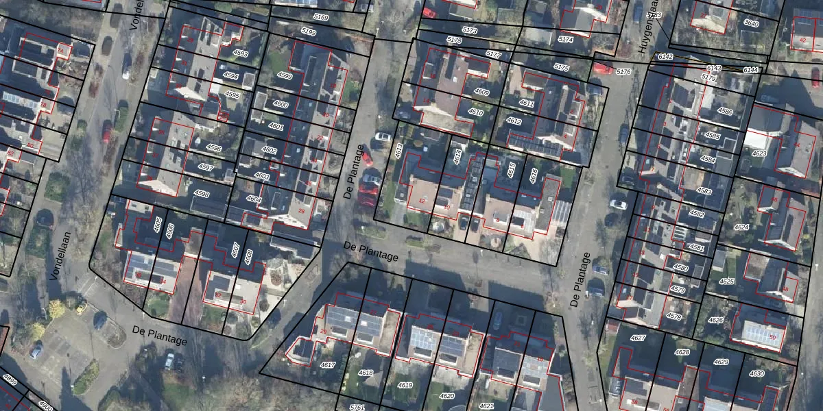 Gebruik de zoekbalk of klik op een perceel voor informatie over de adressen binnen dit perceel.