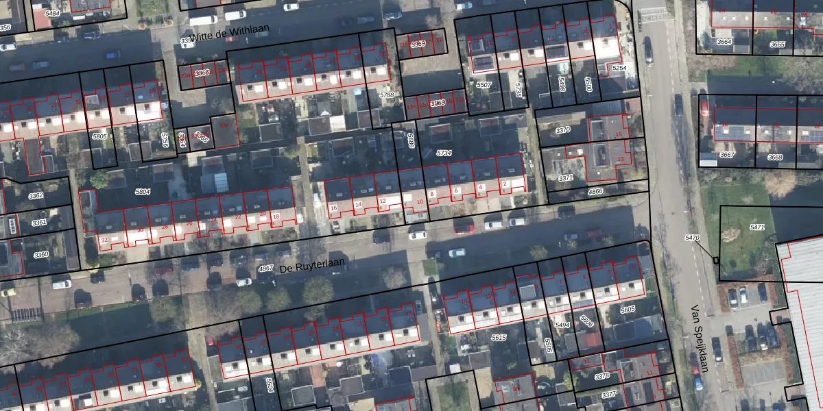 Het perceel waarop De Ruyterlaan 10 staat heeft een oppervlakte van 150 m². Dit is een middelgroot perceel. De perceeloppervlakte wordt geregistreerd door het Kadaster. Gedetailleerde informatie over de maten van dit perceel kunt u vinden in het rapport Kadastrale kaart met maatvoering van De Ruyterlaan 10.