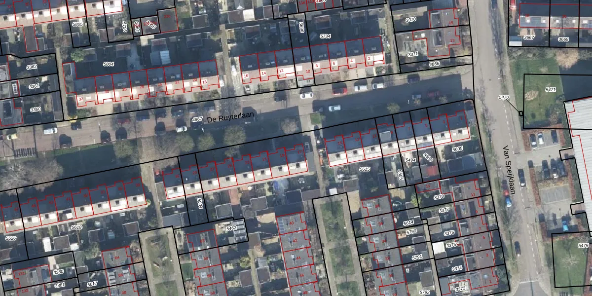 Het perceel waarop De Ruyterlaan 17 staat heeft een oppervlakte van 3248 m². Dit is een zeer groot perceel. De perceeloppervlakte wordt geregistreerd door het Kadaster. Gedetailleerde informatie over de maten van dit perceel kunt u vinden in het rapport Kadastrale kaart met maatvoering van De Ruyterlaan 17.