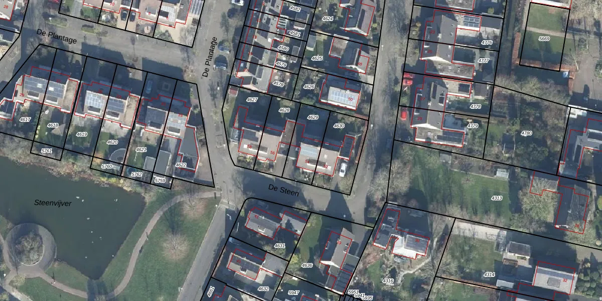 Gebruik de zoekbalk of klik op een perceel voor informatie over de adressen binnen dit perceel.