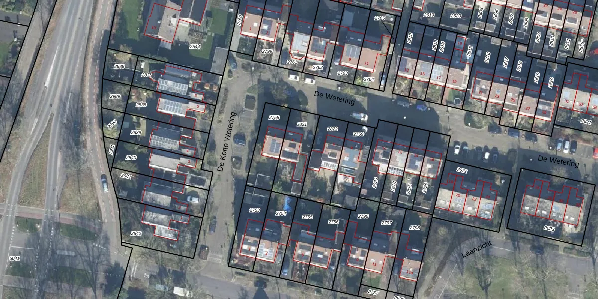 Gebruik de zoekbalk of klik op een perceel voor informatie over de adressen binnen dit perceel.