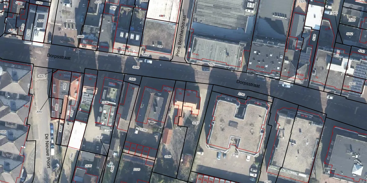 Gebruik de zoekbalk of klik op een perceel voor informatie over de adressen binnen dit perceel.