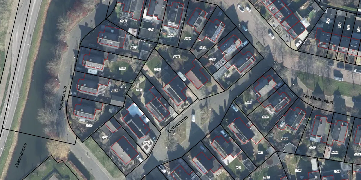 Gebruik de zoekbalk of klik op een perceel voor informatie over de adressen binnen dit perceel.