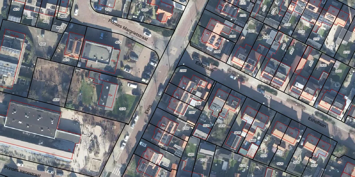 Gebruik de zoekbalk of klik op een perceel voor informatie over de adressen binnen dit perceel.