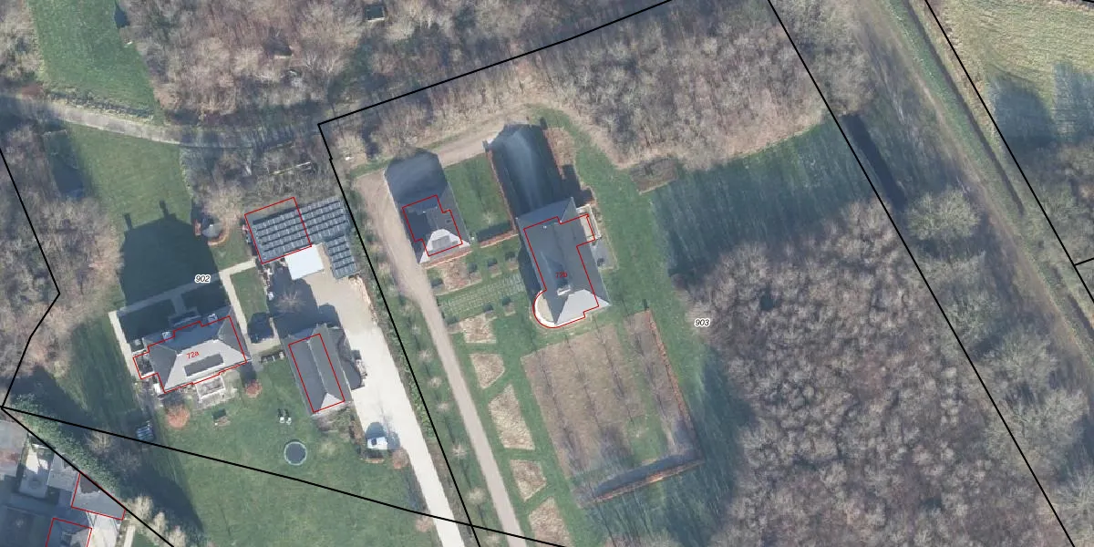 Het perceel waarop Ekris 72-b staat heeft een oppervlakte van 1,0 ha. Dit is een zeer groot perceel. De perceeloppervlakte wordt geregistreerd door het Kadaster. Gedetailleerde informatie over de maten van dit perceel kunt u vinden in het rapport Kadastrale kaart met maatvoering van Ekris 72-b.