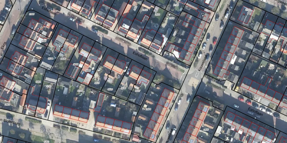 Gebruik de zoekbalk of klik op een perceel voor informatie over de adressen binnen dit perceel.