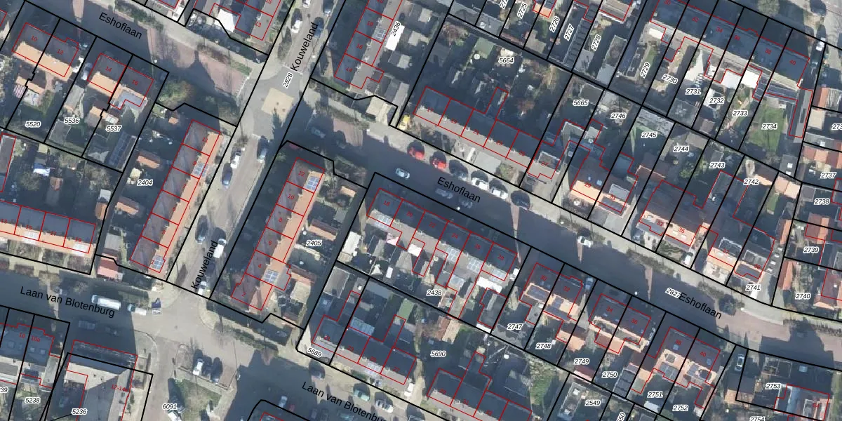Eshoflaan 20 is gelegen op kadastraal perceel WDB02B2438. Deze kadastrale aanduiding is uniek en wordt gebruikt door het Kadaster om eigendomsrechten en andere zakelijke rechten vast te leggen. Het perceel maakt onderdeel uit van de kadastrale gemeente Woudenberg.