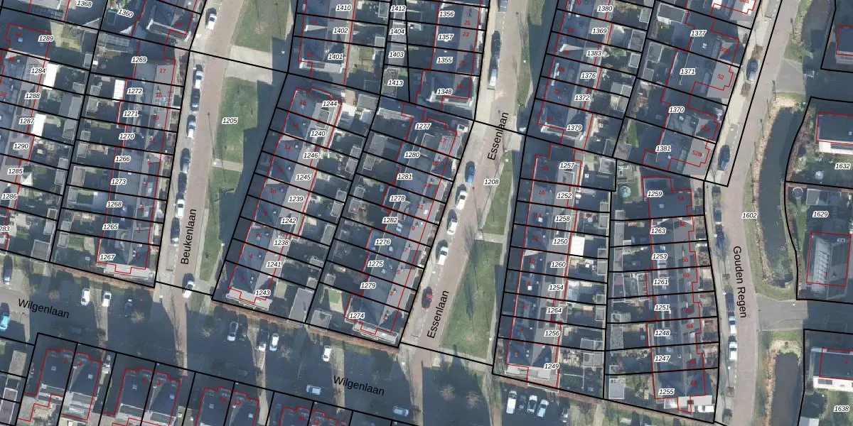 Gebruik de zoekbalk of klik op een perceel voor informatie over de adressen binnen dit perceel.