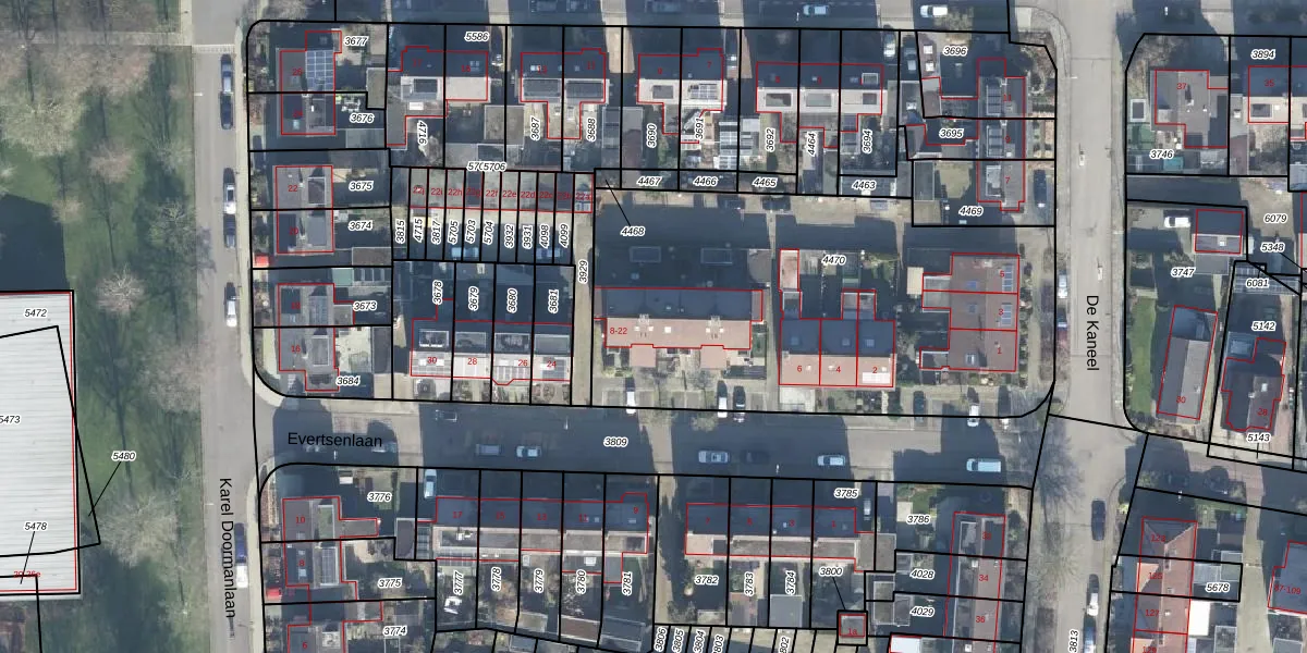 Evertsenlaan 16 is gelegen op kadastraal perceel WDB02B4470. Deze kadastrale aanduiding is uniek en wordt gebruikt door het Kadaster om eigendomsrechten en andere zakelijke rechten vast te leggen. Het perceel maakt onderdeel uit van de kadastrale gemeente Woudenberg.