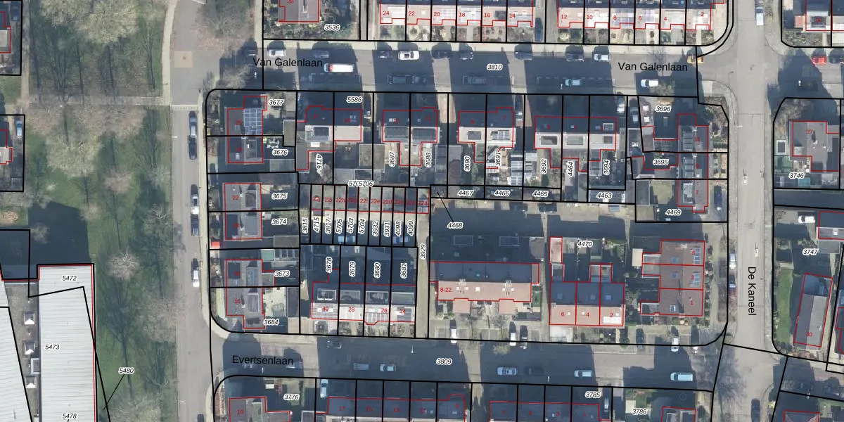 Het perceel waarop Evertsenlaan 22-a staat heeft een oppervlakte van 110 m². Dit is een middelgroot perceel. De perceeloppervlakte wordt geregistreerd door het Kadaster. Gedetailleerde informatie over de maten van dit perceel kunt u vinden in het rapport Kadastrale kaart met maatvoering van Evertsenlaan 22-a.