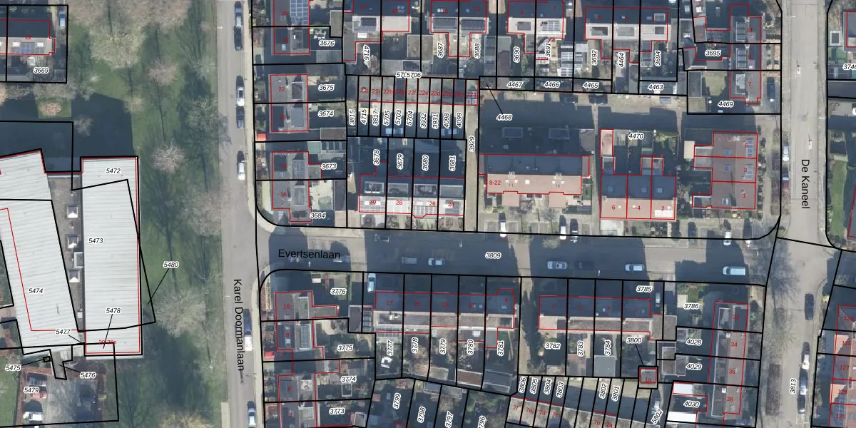 Evertsenlaan 26 is gelegen op kadastraal perceel WDB02B3680. Deze kadastrale aanduiding is uniek en wordt gebruikt door het Kadaster om eigendomsrechten en andere zakelijke rechten vast te leggen. Het perceel maakt onderdeel uit van de kadastrale gemeente Woudenberg.