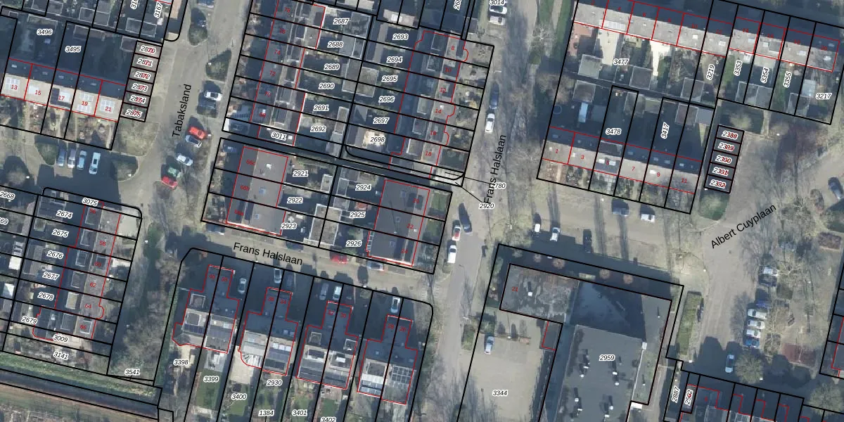 Gebruik de zoekbalk of klik op een perceel voor informatie over de adressen binnen dit perceel.