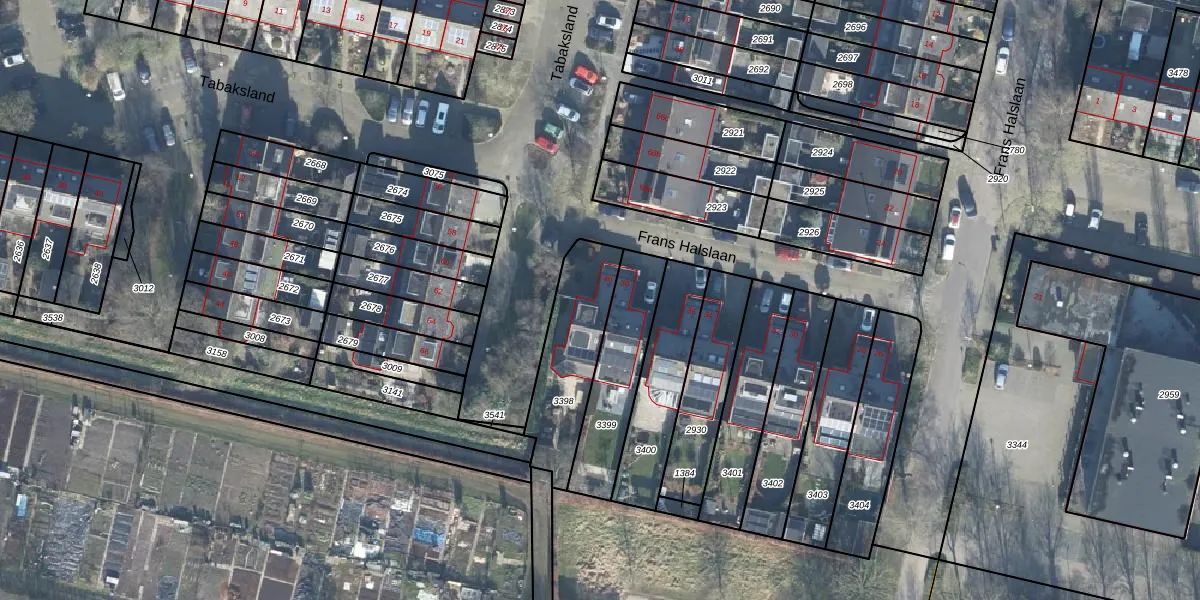 Gebruik de zoekbalk of klik op een perceel voor informatie over de adressen binnen dit perceel.