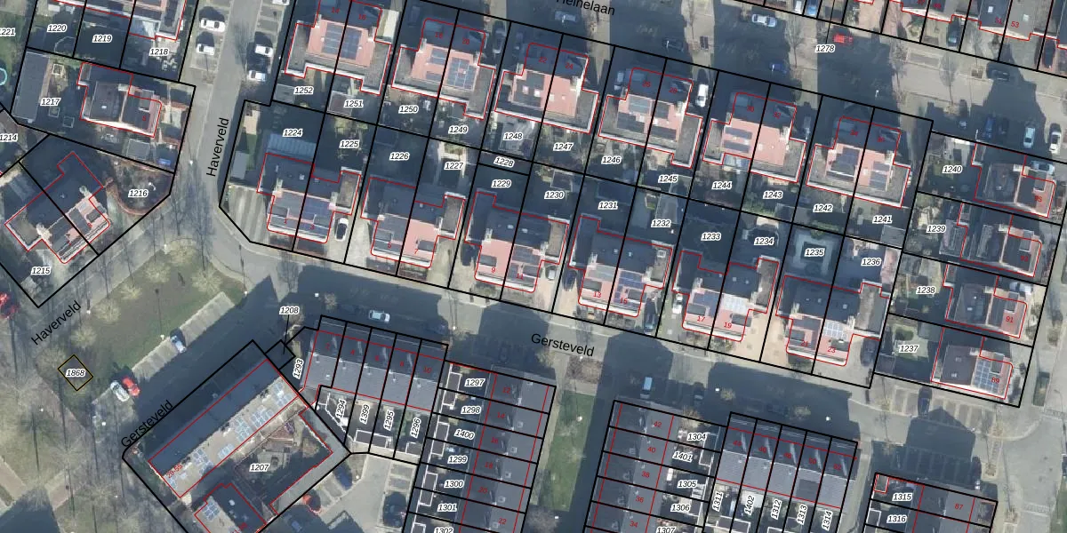 Gersteveld 11 is gelegen op kadastraal perceel WDB02H1230. Deze kadastrale aanduiding is uniek en wordt gebruikt door het Kadaster om eigendomsrechten en andere zakelijke rechten vast te leggen. Het perceel maakt onderdeel uit van de kadastrale gemeente Woudenberg.