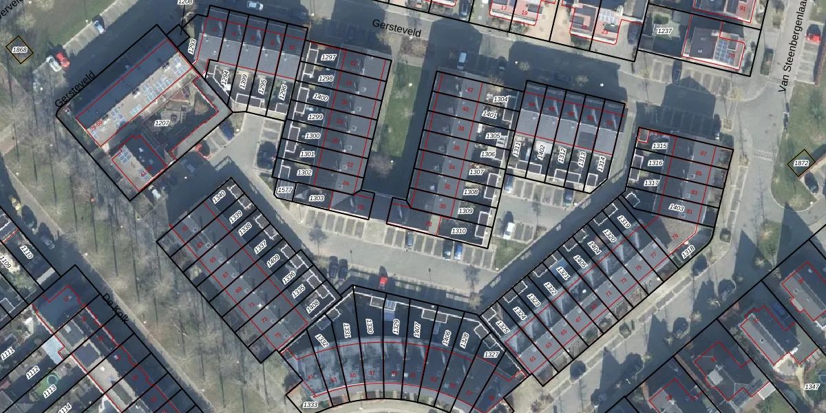 Het perceel waarop Gersteveld 30 staat heeft een oppervlakte van 104 m². Dit is een middelgroot perceel. De perceeloppervlakte wordt geregistreerd door het Kadaster. Gedetailleerde informatie over de maten van dit perceel kunt u vinden in het rapport Kadastrale kaart met maatvoering van Gersteveld 30.