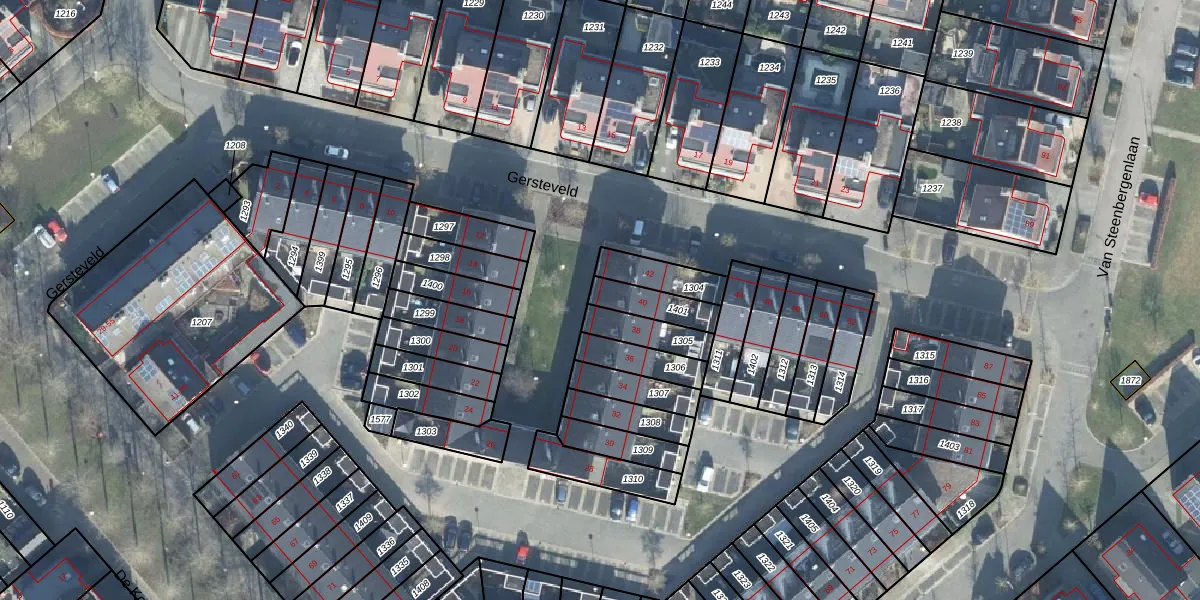 Gersteveld 40 is gelegen op kadastraal perceel WDB02H1401. Deze kadastrale aanduiding is uniek en wordt gebruikt door het Kadaster om eigendomsrechten en andere zakelijke rechten vast te leggen. Het perceel maakt onderdeel uit van de kadastrale gemeente Woudenberg.