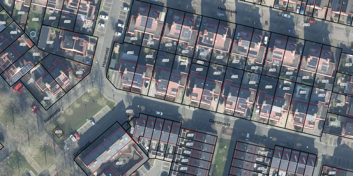 Gersteveld 7 is gelegen op kadastraal perceel WDB02H1227. Deze kadastrale aanduiding is uniek en wordt gebruikt door het Kadaster om eigendomsrechten en andere zakelijke rechten vast te leggen. Het perceel maakt onderdeel uit van de kadastrale gemeente Woudenberg.