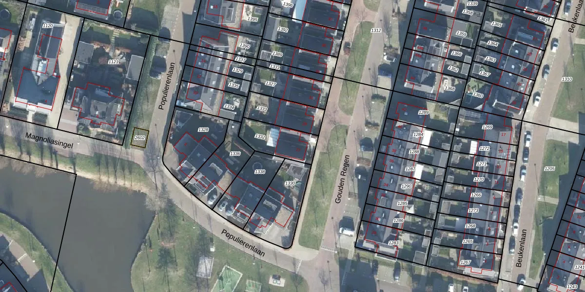 Het perceel waarop Gouden Regen 27 staat heeft een oppervlakte van 261 m². Dit is een middelgroot perceel. De perceeloppervlakte wordt geregistreerd door het Kadaster. Gedetailleerde informatie over de maten van dit perceel kunt u vinden in het rapport Kadastrale kaart met maatvoering van Gouden Regen 27.