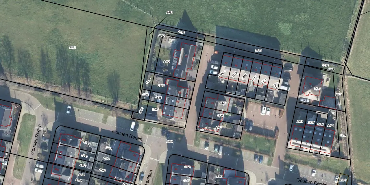 Het perceel waarop Gouden Regen 55 staat heeft een oppervlakte van 220 m². Dit is een middelgroot perceel. De perceeloppervlakte wordt geregistreerd door het Kadaster. Gedetailleerde informatie over de maten van dit perceel kunt u vinden in het rapport Kadastrale kaart met maatvoering van Gouden Regen 55.