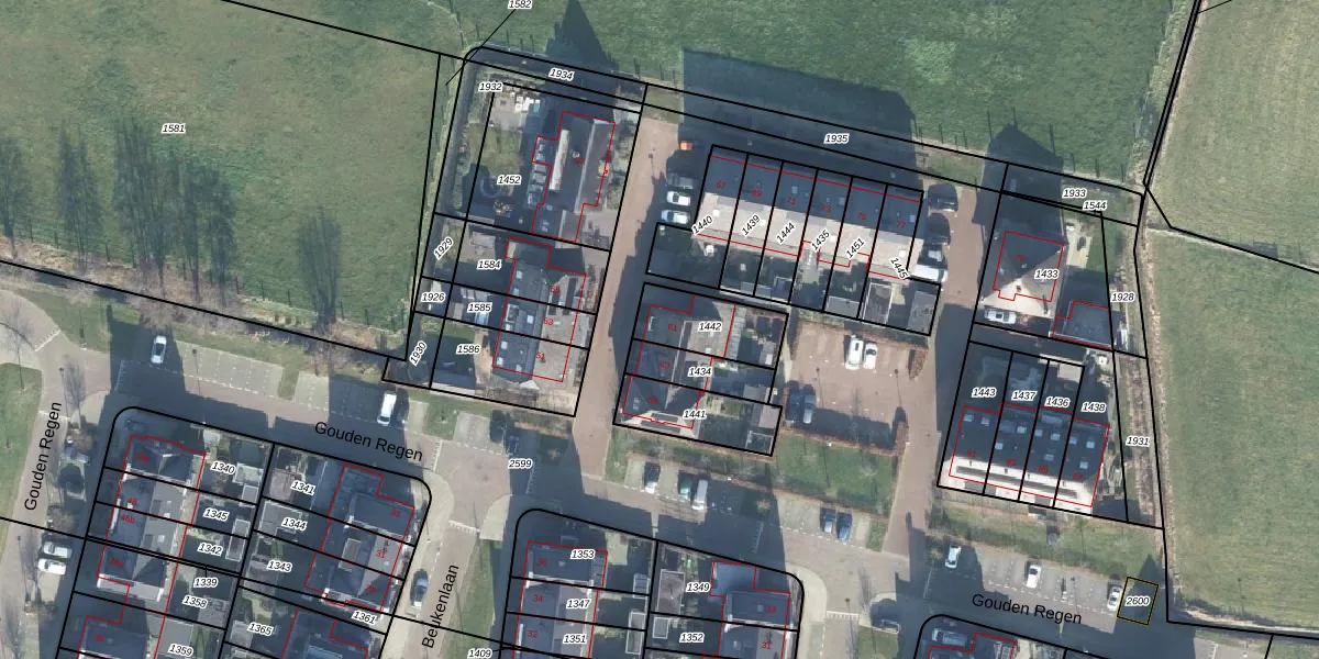 Het perceel waarop Gouden Regen 61 staat heeft een oppervlakte van 193 m². Dit is een middelgroot perceel. De perceeloppervlakte wordt geregistreerd door het Kadaster. Gedetailleerde informatie over de maten van dit perceel kunt u vinden in het rapport Kadastrale kaart met maatvoering van Gouden Regen 61.