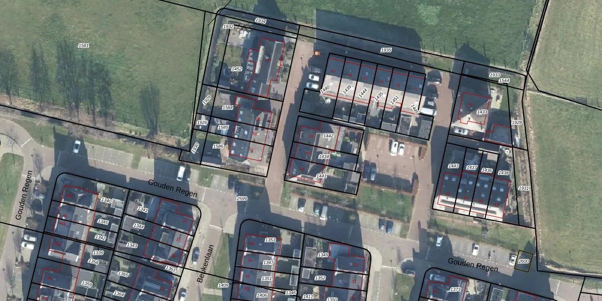 Het perceel waarop Gouden Regen 63 staat heeft een oppervlakte van 120 m². Dit is een middelgroot perceel. De perceeloppervlakte wordt geregistreerd door het Kadaster. Gedetailleerde informatie over de maten van dit perceel kunt u vinden in het rapport Kadastrale kaart met maatvoering van Gouden Regen 63.