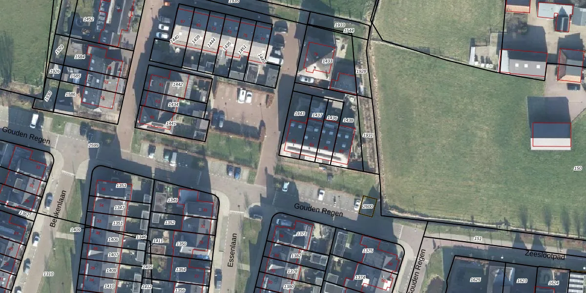 Het perceel waarop Gouden Regen 81 staat heeft een oppervlakte van 157 m². Dit is een middelgroot perceel. De perceeloppervlakte wordt geregistreerd door het Kadaster. Gedetailleerde informatie over de maten van dit perceel kunt u vinden in het rapport Kadastrale kaart met maatvoering van Gouden Regen 81.