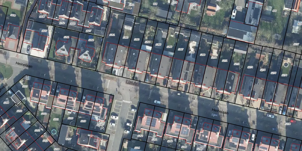 Heinelaan 19 is gelegen op kadastraal perceel WDB02H1265. Deze kadastrale aanduiding is uniek en wordt gebruikt door het Kadaster om eigendomsrechten en andere zakelijke rechten vast te leggen. Het perceel maakt onderdeel uit van de kadastrale gemeente Woudenberg.