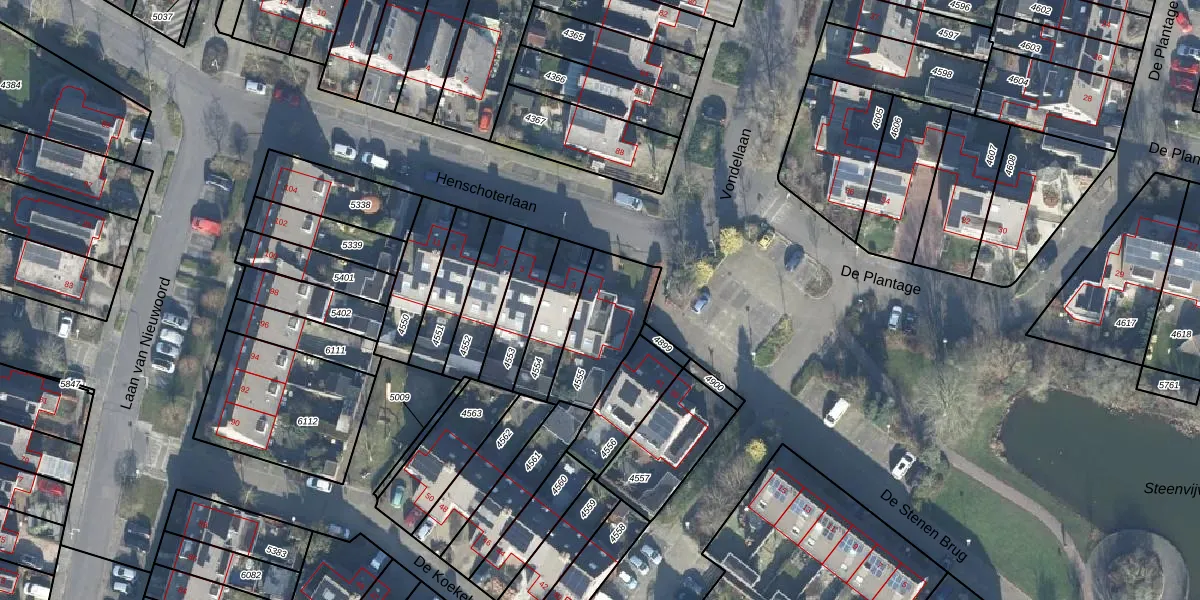 Henschoterlaan 1 is gelegen op kadastraal perceel WDB02B4555. Deze kadastrale aanduiding is uniek en wordt gebruikt door het Kadaster om eigendomsrechten en andere zakelijke rechten vast te leggen. Het perceel maakt onderdeel uit van de kadastrale gemeente Woudenberg.