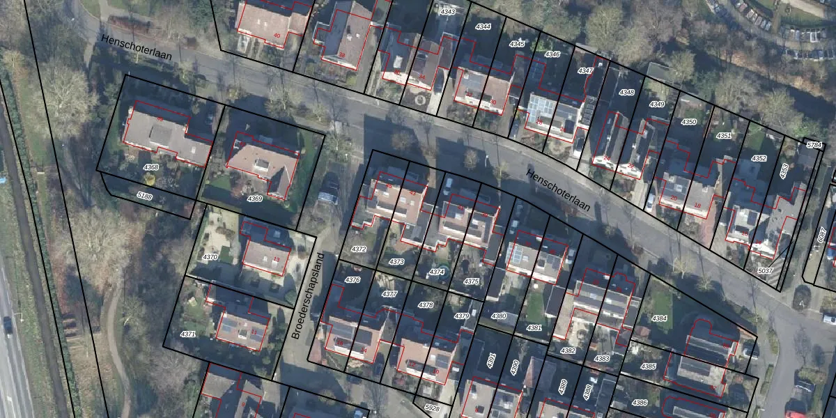 Het perceel waarop Henschoterlaan 43 staat heeft een oppervlakte van 246 m². Dit is een middelgroot perceel. De perceeloppervlakte wordt geregistreerd door het Kadaster. Gedetailleerde informatie over de maten van dit perceel kunt u vinden in het rapport Kadastrale kaart met maatvoering van Henschoterlaan 43.
